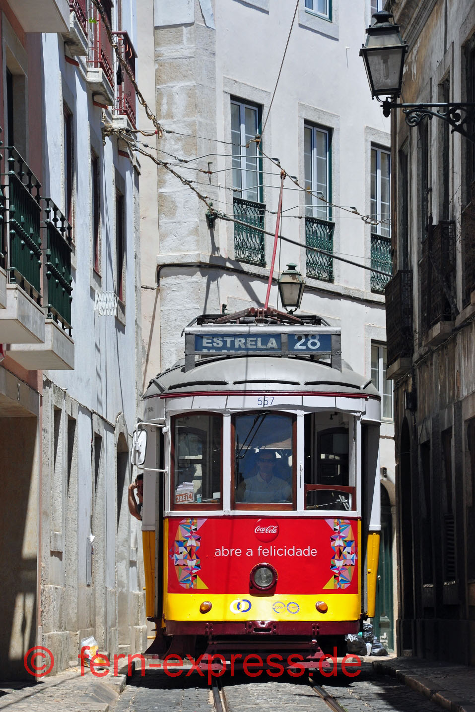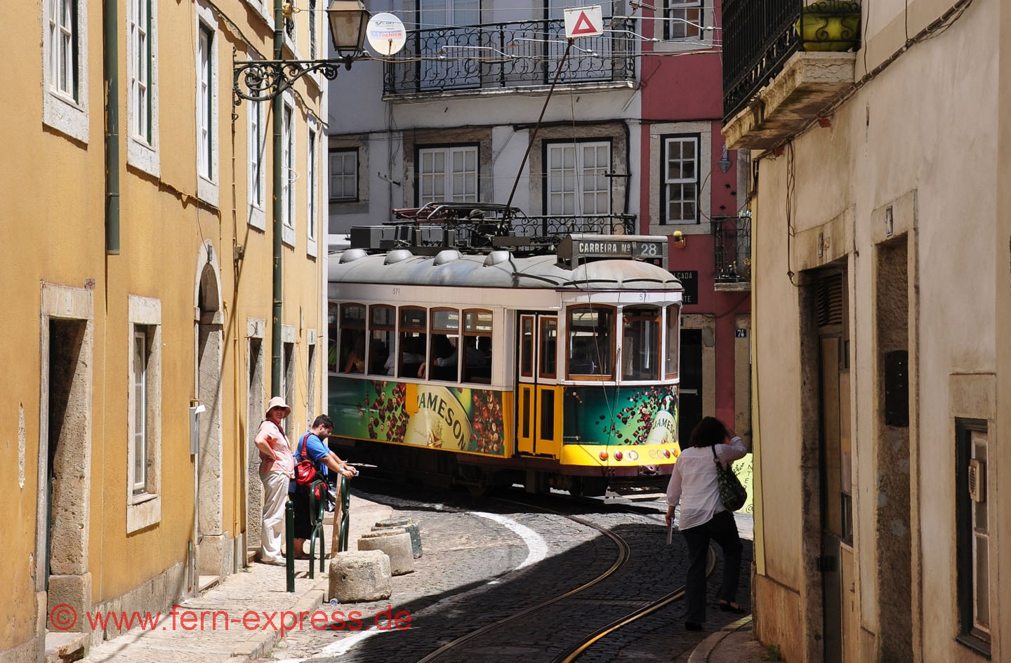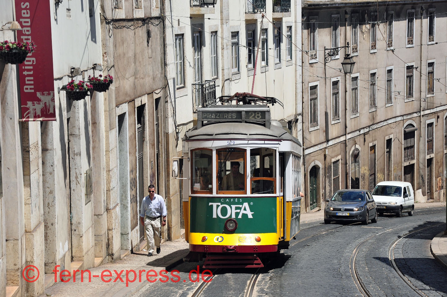 Enger geht’s nimmer! Als die Altstadt von Lissabon entstand, wurden noch keine Straßenbahnlinien geplant … Entsprechend knapp ist der Platz in den verwinkelten Sträßchen der Alfama. (Juli 2010, Karl-W. Koch)