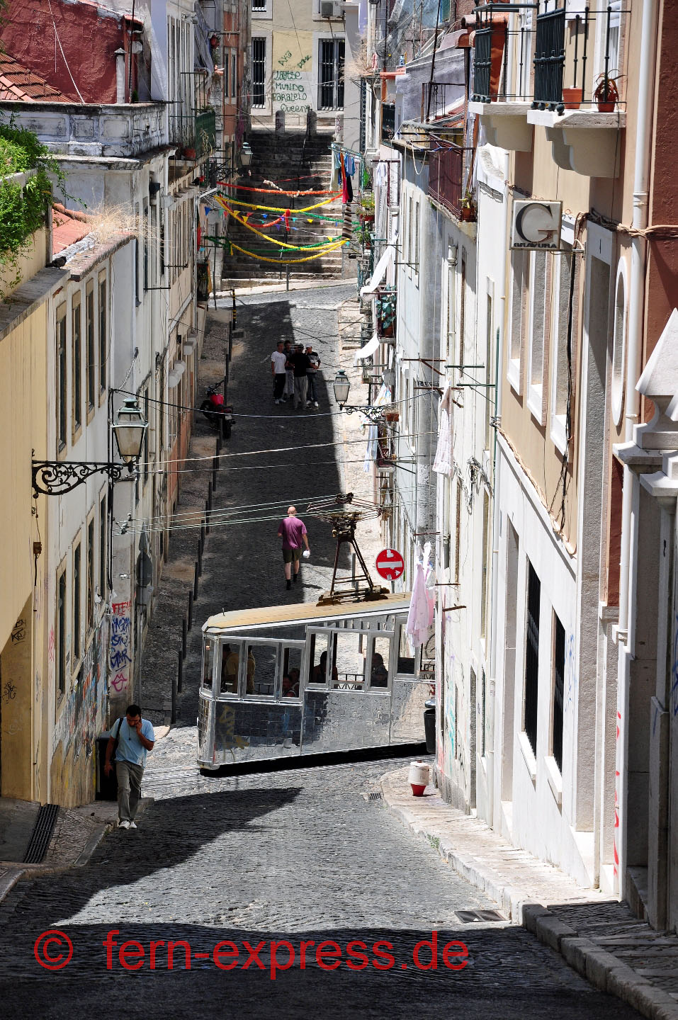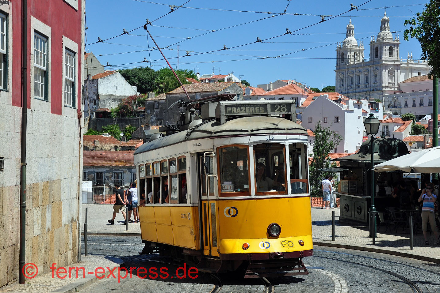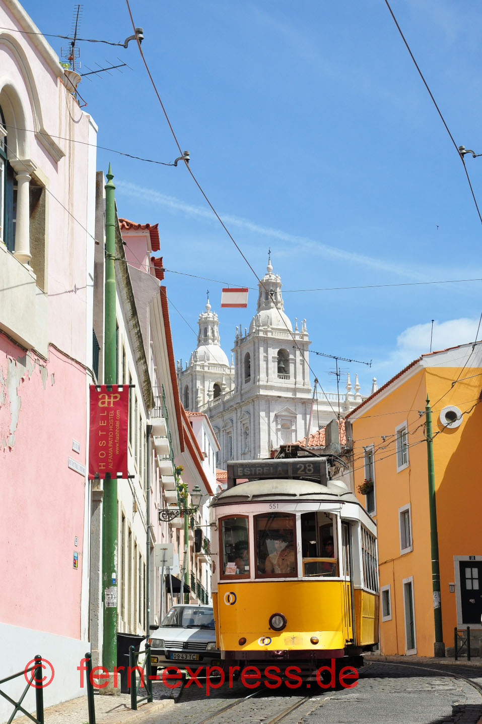 Enger geht’s nimmer! Als die Altstadt von Lissabon entstand, wurden noch keine Straßenbahnlinien geplant … Entsprechend knapp ist der Platz in den verwinkelten Sträßchen der Alfama. (Juli 2010, Karl-W. Koch)