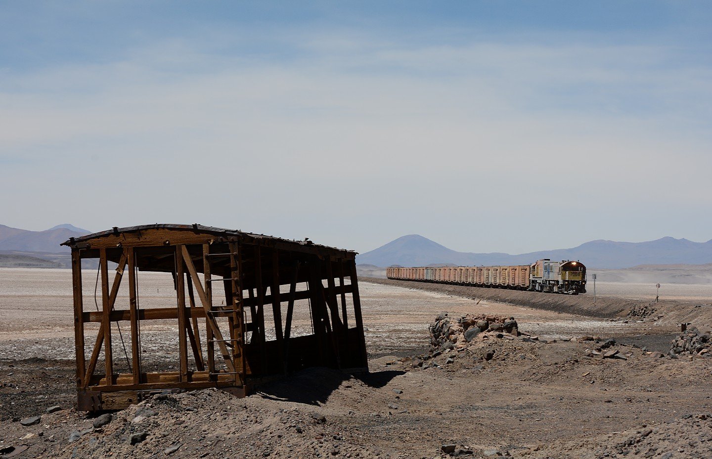 Bedingt durch die Verteilung auf mehrere, nicht mehr zusammenhängende Bahnen gab es auch größere Reisepausen. Immerhin sind es von Santiago bis zu unserem nördlichsten Reiseziel, Ollagüe an der bolivianischen Grenze 1.770 km!