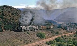Neubaustrecken in BURMA CHINA – die moderne Traktion Neues aus SÜDAFRIKA INDIEN Nachrichten Einen letzten Höhepunkt bot die Strecke Kimberley – De Aar im Winter 1991 mit einem sehenswert inszeniertem Spektakel der SAR den Dampflokfreunden aus aller Welt. Während teilweise „der Papst boxte“, z.B. bei den Verfolgungsfahrten der Doppeltraktion 16E…